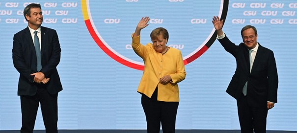 Wie guckt denn da der Herr Söder auf diesem Bild? Während Angela Merkel und Armin Laschet freundlich ins Publikum winken, schaut Markus Söder scheinbar von erhöhter Position gnädig auf die Beiden. Er hat die Ausstrahlung einer Gouvernante, die aufpasst, dass seine Zöglinge alles richtig machen. Und zufrieden scheint er mit ihnen. Armin Laschet agiert glücklos in diesem Wahlkampf. Mal lacht er zum falschen Zeitpunkt vor laufenden Kameras, mal muss er sich von Angela Merkel stützen lassen. Einzig seine Aussage, dass er enttäuscht von Joe Biden ist, hat etwas Markantes. Innenpolitisch kann er nicht reüssieren. So verlegt er sich nun auf die Außenpolitik. Rechtzeitig mit beginnendem Wahlkampf steigen die Corona-Inzidenzwerte wieder. Als wollten sie die Bevölkerung daran erinnern, durch wen sie gut und sicher durch die Krise geführt wurde. Das ist Markus Söder und nicht Armin Laschet. Markus Söder hat energisch seine Bayern in die vermeintlich sicheren eigenen vier Wände verbannt, während Armin Laschet mit Toleranz und Appellen an die Eigenverantwortung der Bevölkerung scheiterte und nicht zuletzt unter dem Druck des Wahlvolks Rheda-Wiedenbrück abriegelte. Diese Maßnahme wirkte wie eine verspätete Überreaktion. Keine Mitte, kein Maß. Auf der anderen Seite Olaf Scholz, der unbemerkt mehr als 500 Milliarden Euro Schulden aufnahm. Das Coronakindergeld half den jungen Familien die Zeit mit Homeoffice und geschlossenen Kindergärten zu vergessen. Nach anfänglichen Schwierigkeiten wurde auch der Protest der Hotel- und Gastronomiebetriebe mit großzügiger Unterstützung abgeschwächt. Olaf Scholz und Markus Söder: jeder auf seine Art ein Held der Coronakrise. Was läge näher, als die Beiden als Nachfolger der Ära Angela Merkel zu küren. Beide haben Erfahrung an ihrer Seite. Sie sind die wahren Wächter des deutschen Wohls.